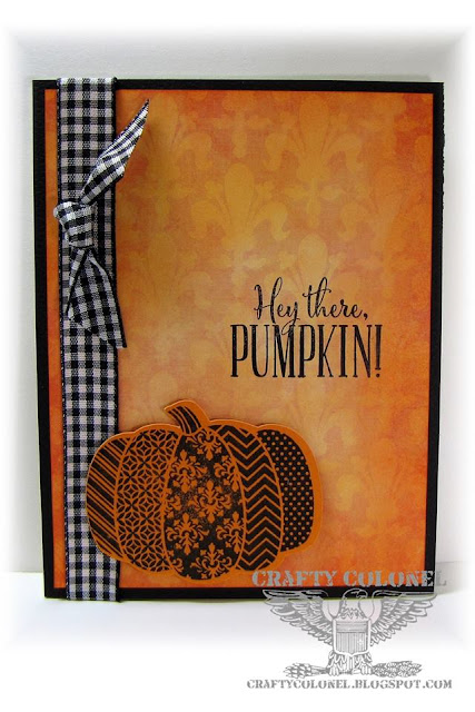 We loved Kathy's beautiful card with the unique pattern, fall leaves and pumpkin and her "heartfelt thanks" sentiment!