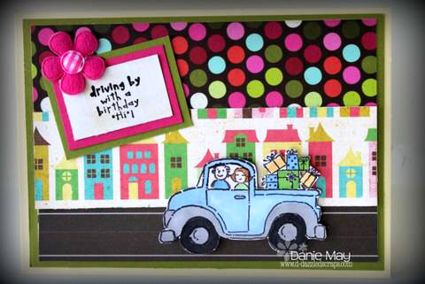 Beep, beep! How about a shopping trip in a pickup truck? Danie created this fabulous birthday card with bright colors and an adorable city scene!