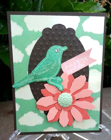 Her second card spotlights the dragonfly and the flower that is in full bloom in this lovely floral garden.
